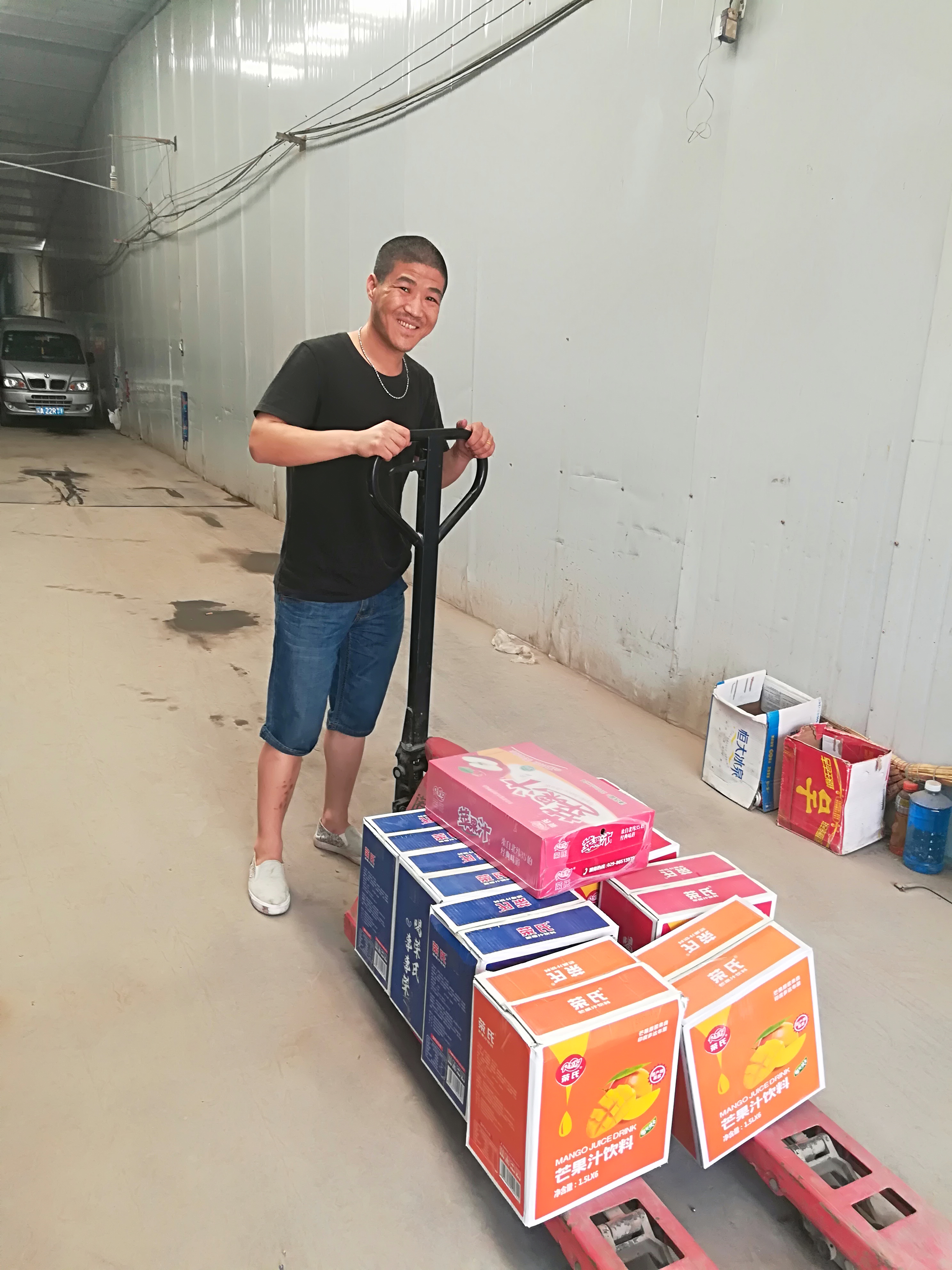 這一天,司機楊建剛、庫工楊艷偉兩位師傅在給臨潼送貨途中,由于路況極差,滿載產品的車輛爬陡坡時突然發生故障,無法啟動。為了不耽誤送貨,他們馬上將緊急情況通知給了業務同事,銷售主管吳歡與房兵娜等人立即趕赴現場,硬是帶著家人用三輪車,電動車進行轉運,歷經三小時的艱苦奮戰,安全及時的將貨物轉移到了客戶的庫房中。
